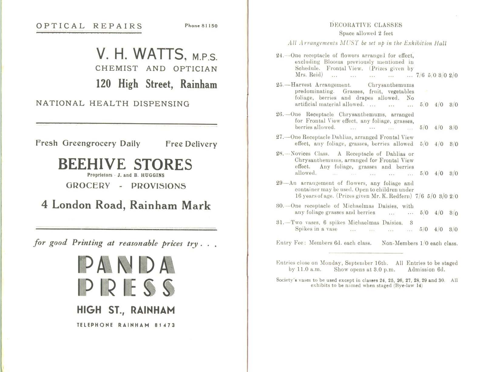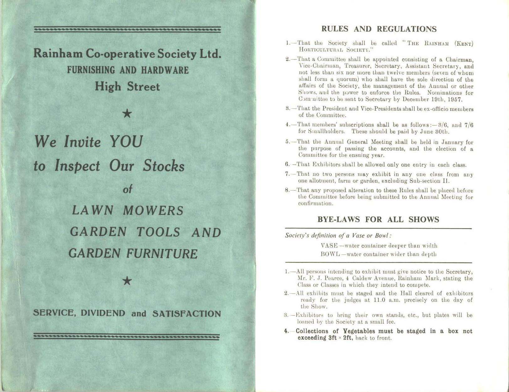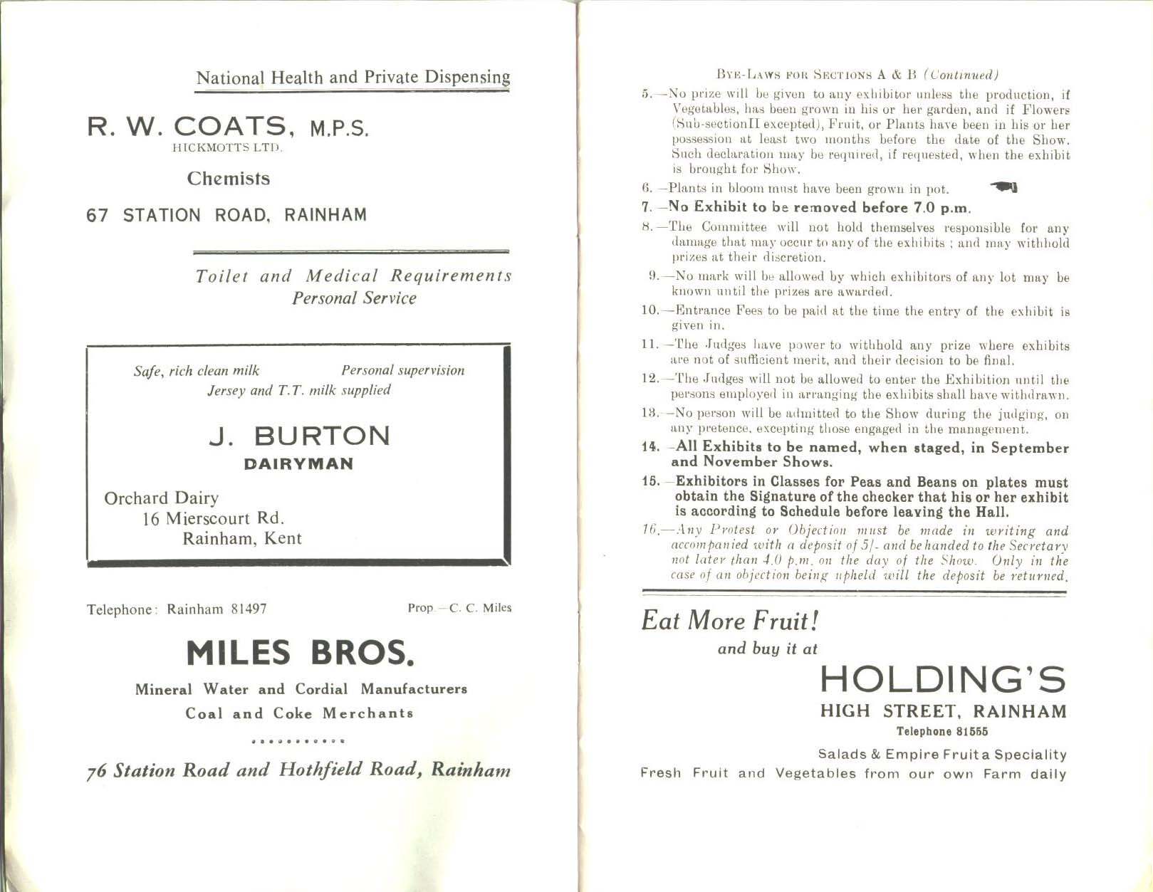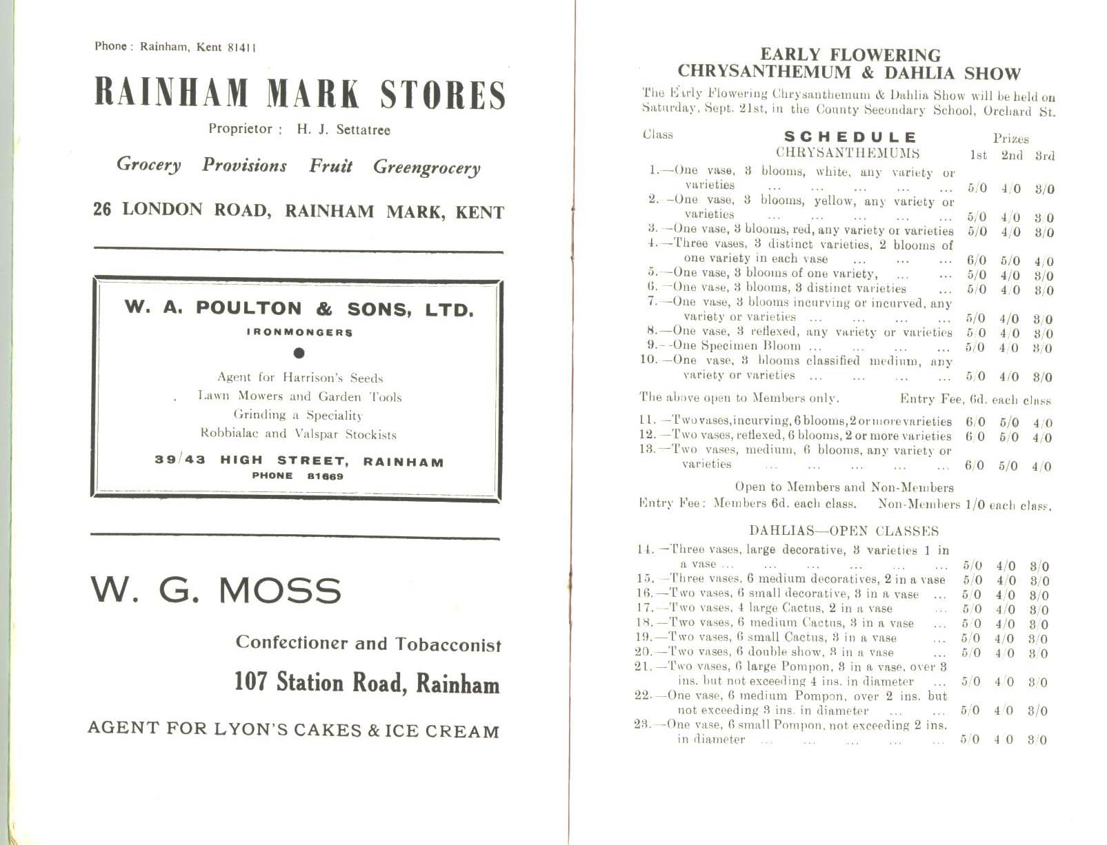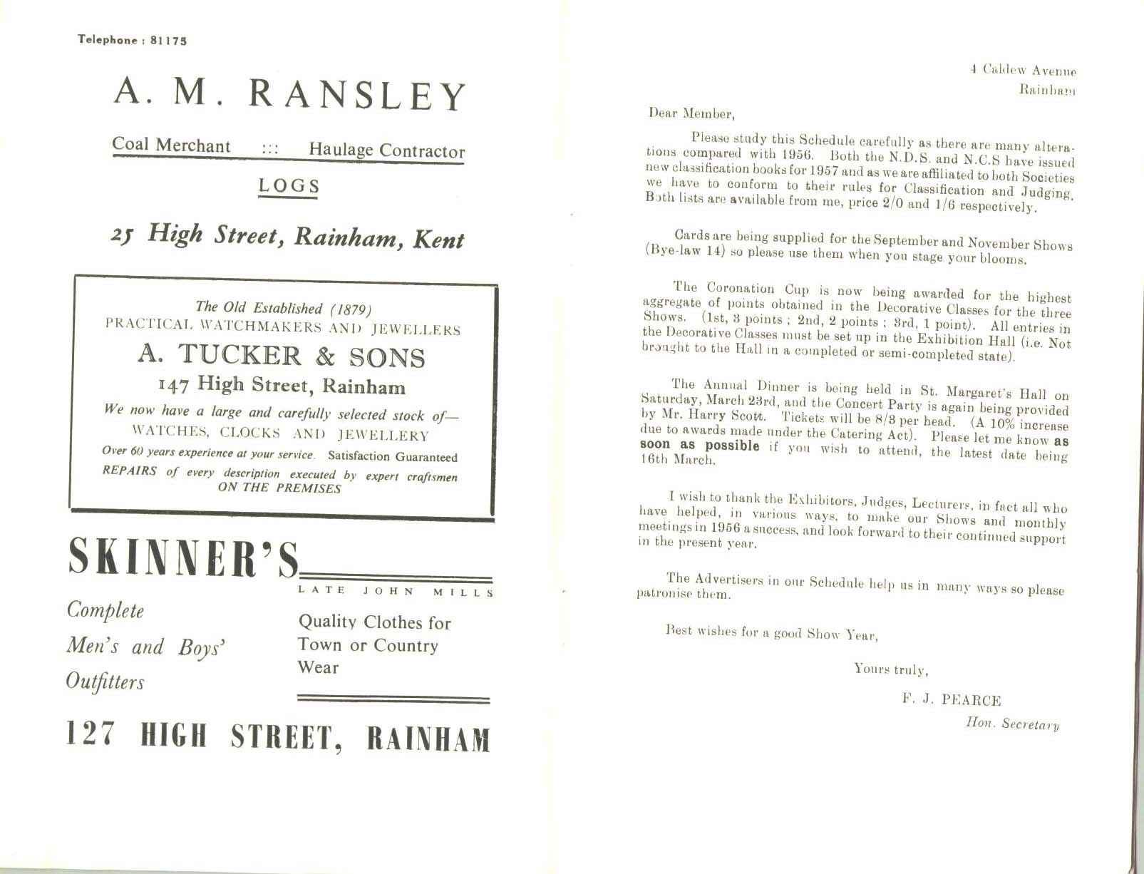 The scans below are of the Programme for Rainham Horticultural Society Show 1957. They show some of the local businesses in Rainham Kent that were operating in 1957 which gives a glimpse into life in Rainham in the 1950s. Very few of these local traders are still operating in Rainham.